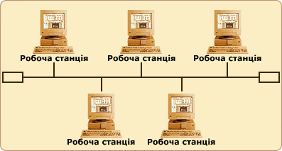 Взаємодія серверів і робочих станцій забезпечується мережним ПЗ кожного комп'ютера мережі. Користувачеві робочої станції доступні ресурси мережі відповідно до заздалегідь обумовлених правил.