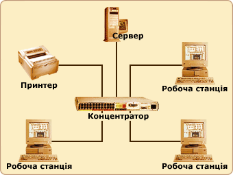 Комп'ютер, який надає свої ресурси для спільного використання, називається сервером (від англ. «to serve» — постачати, обслуговувати). Комп'ютери, що використовують ресурси мережі, називають робочими станціями.